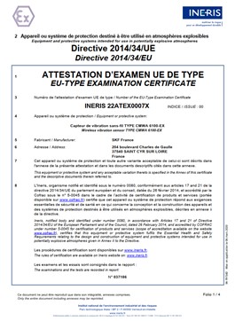 The SKF Wireless IMx-1 sensor has obtained the ATEX certification. Thanks to these ATEX certificates, this successful wireless IMx-1 sensor can now also be introduced in the Oil & Gas and Petro Chemical industry, where ATEX Zone 1 / Zone 2 product certification related to safe use in hazardous environment is required.